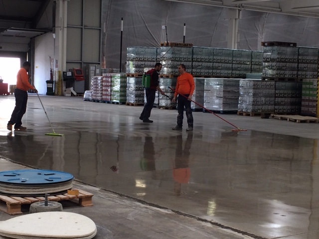 Active lithium content of the product comes into chemical reaction with concrete components and forms insoluble calcium silicate hydrate (CSH) that increases surface hardness, reduces dusting and makes maintenance of the floor easy.